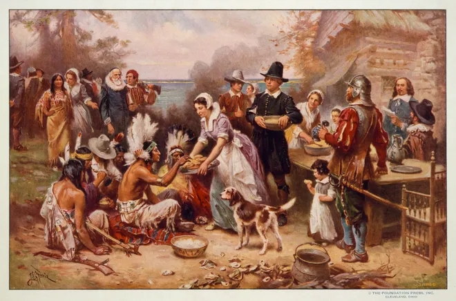 When the pilgrims landed at Plymouth Rock they were enabled to survive with the help of the people indigenous there. Then a generation later, the descendents of those friendly Indians were massacred by the descendents of those pilgrims helped and subsequent European arrivals who had joined them. When was the original great feast called Thanksgiving, that is still celebrated today in November? Was it during the early period of the pilgrim colony in Massachusetts while the newcomers were apparently on friendly terms with the Indians? Or was it later, after massacring the natives and appropriating their ancestral homeland? When we celebrate Thanksgiving, are we celebrating cooperation, or are we celebrating subjugation, murder and theft?